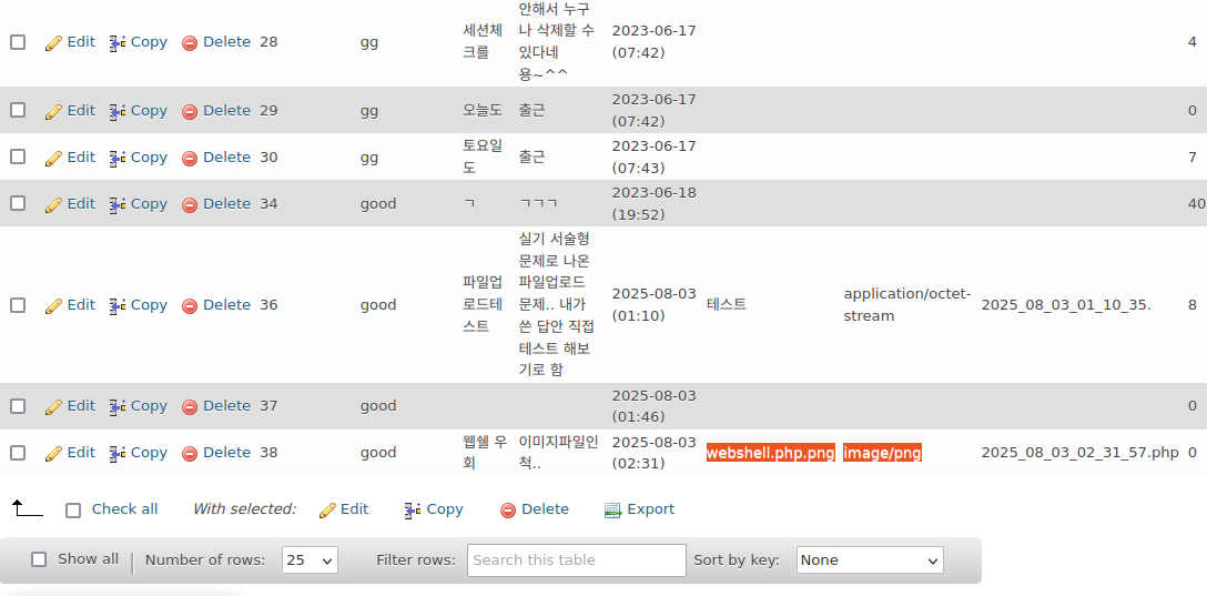 25년 2회 보안기사 실기 파일 업로드 문제에서