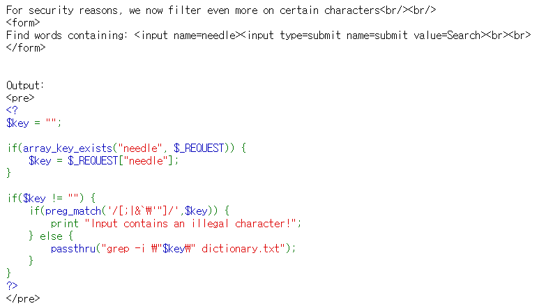 그런데 이번에는 Natas 9 to 10 에서 보다 많은 특수문자를 필터링하고 있으며,