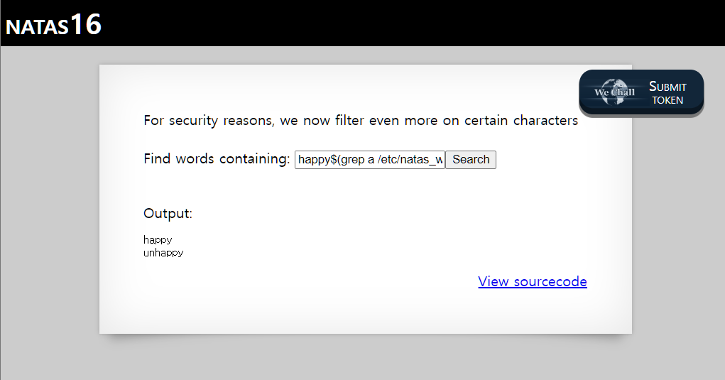 happy$(grep a /etc/natas_webpass/natas17)를 입력했을 때도 똑같이 출력된다.