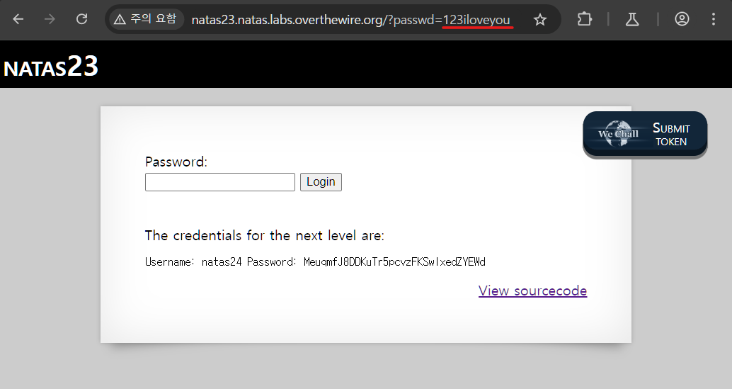 아래와 같이 123iloveyou 를 passwd에 입력하면 다음 단계의 패스워드가 나온다.