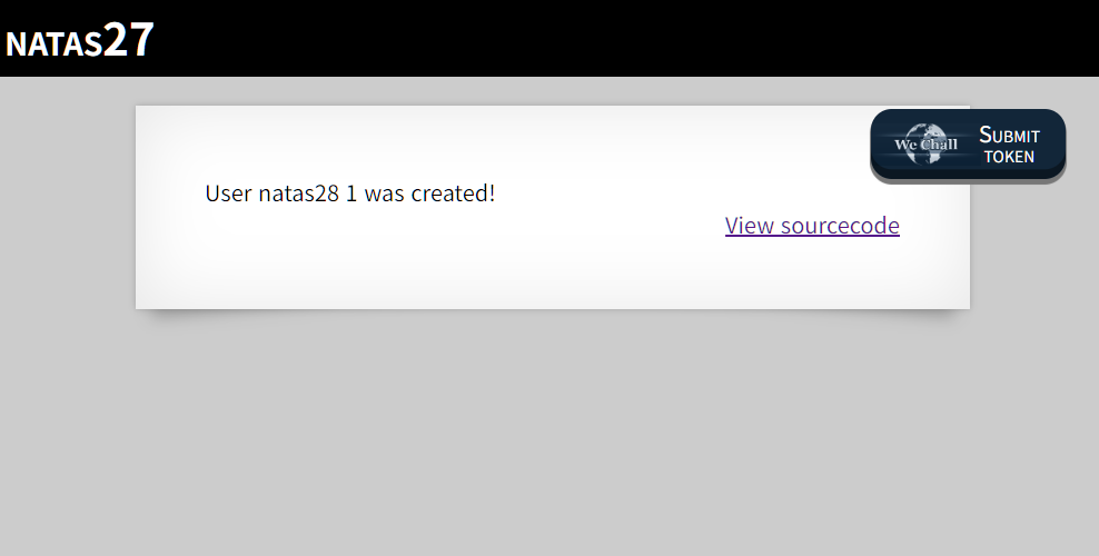 “natas28”+”공백 57자”+”1”로 구성된 65자의 username으로 로그인 시도하여 DB에 계정이 추가되도록 한다.