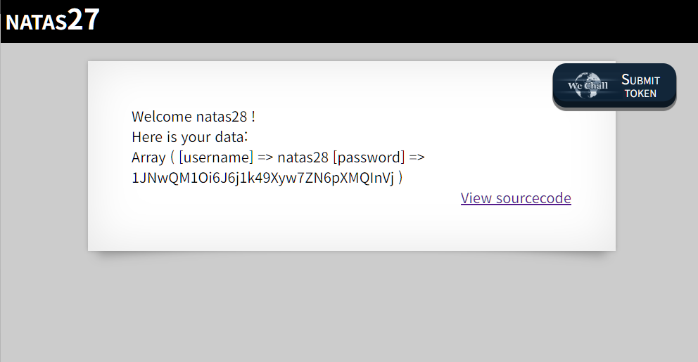 기존의 “natas28” 계정으로 착각시켜 “natas28”의 패스워드를 출력